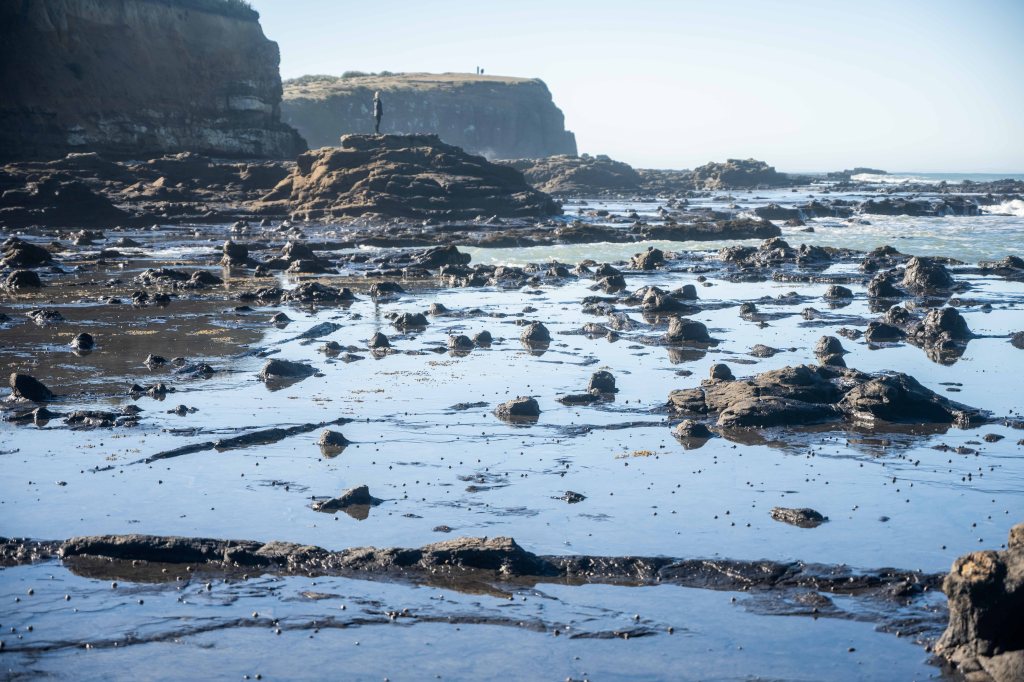 Our first stop in Curio Bay itself was the Petrified forest, since it requires a low tide to explore the large shelf of hardened wood.